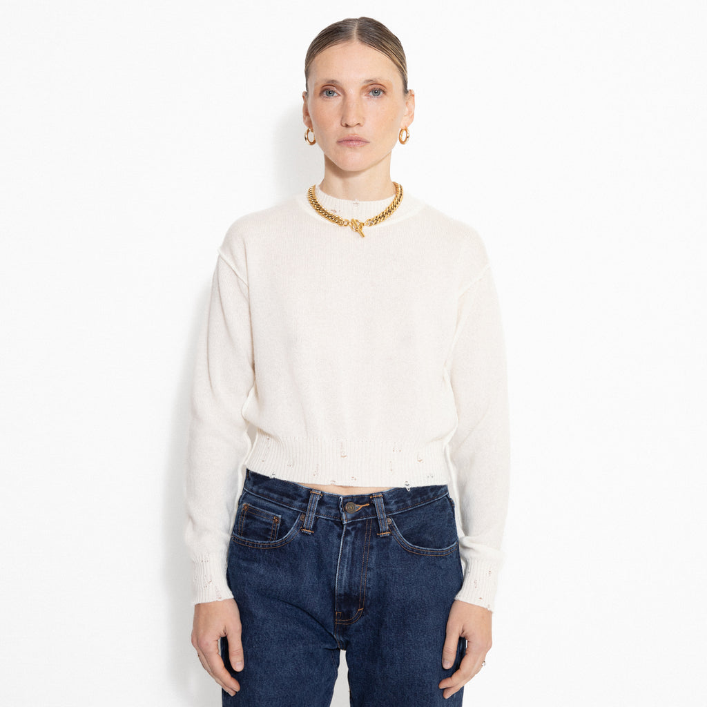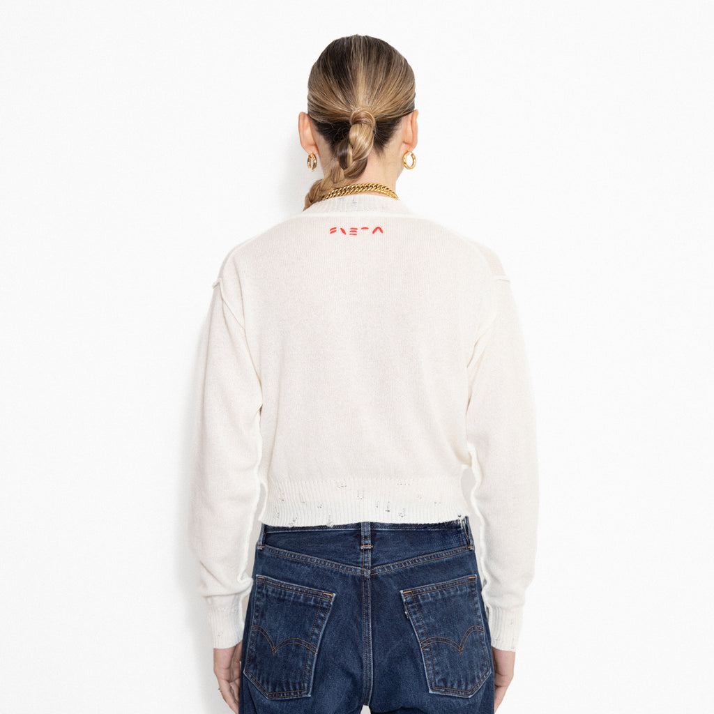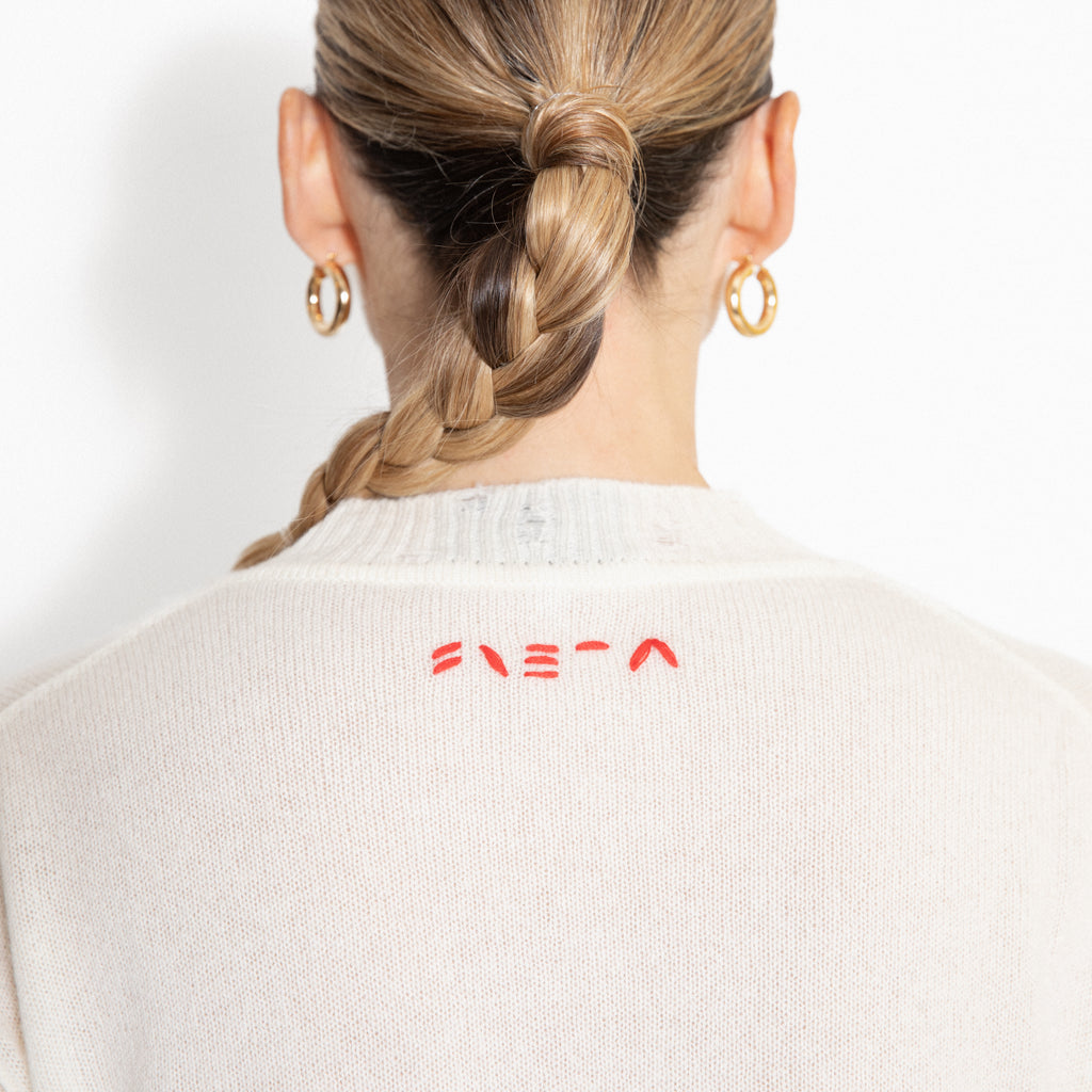 Billie white cashmere sweater with embroidery