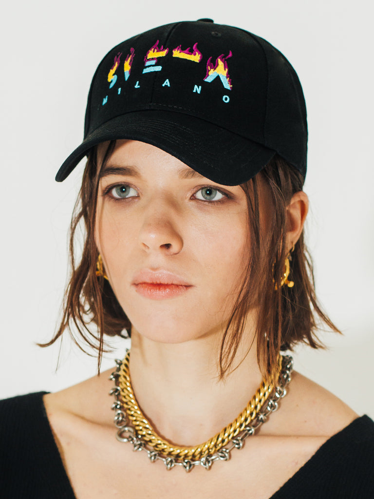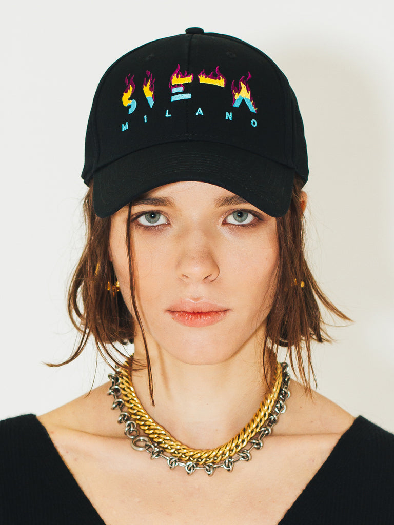 Babe is a classic baseball cap in canvas with flamed embroidered Sveta Milano logo.