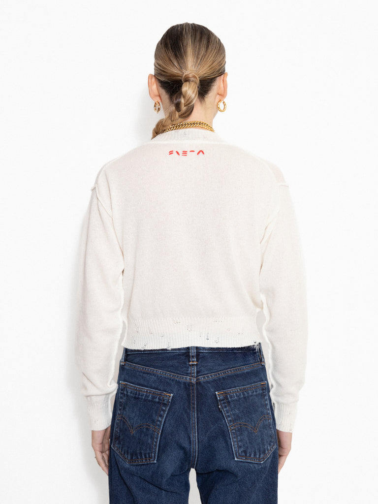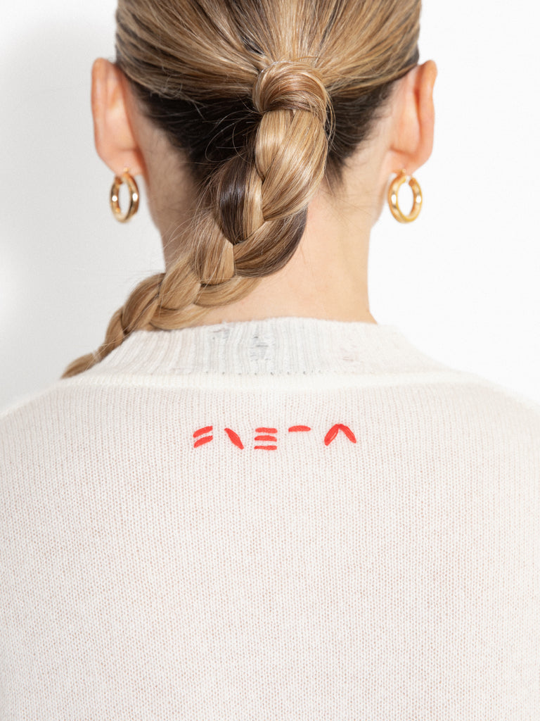 Billie white cashmere sweater with embroidery