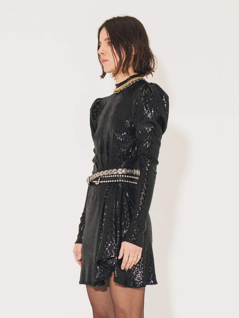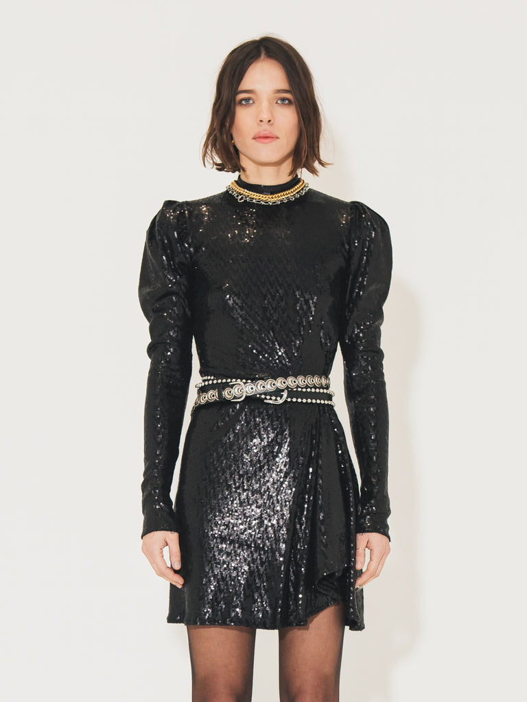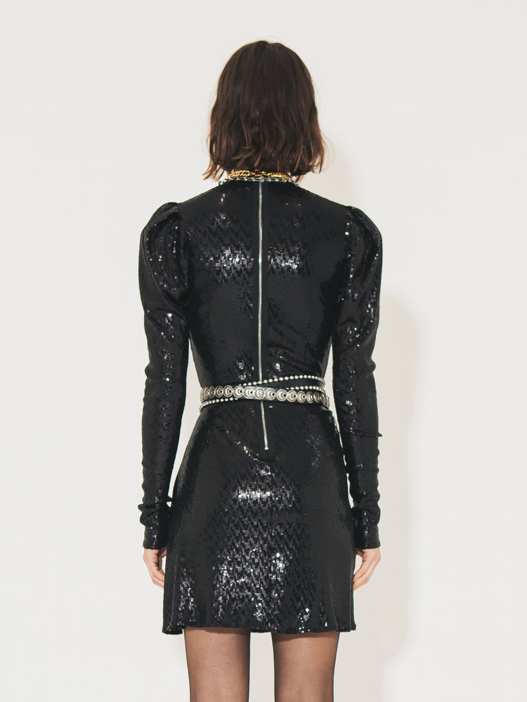 You can never go wrong with a little black dress. Decorated with all-over black paillettes, London sequin dress will add a sparkly touch to your wardrobe and make you shine wherever you go, making a textual style statement.