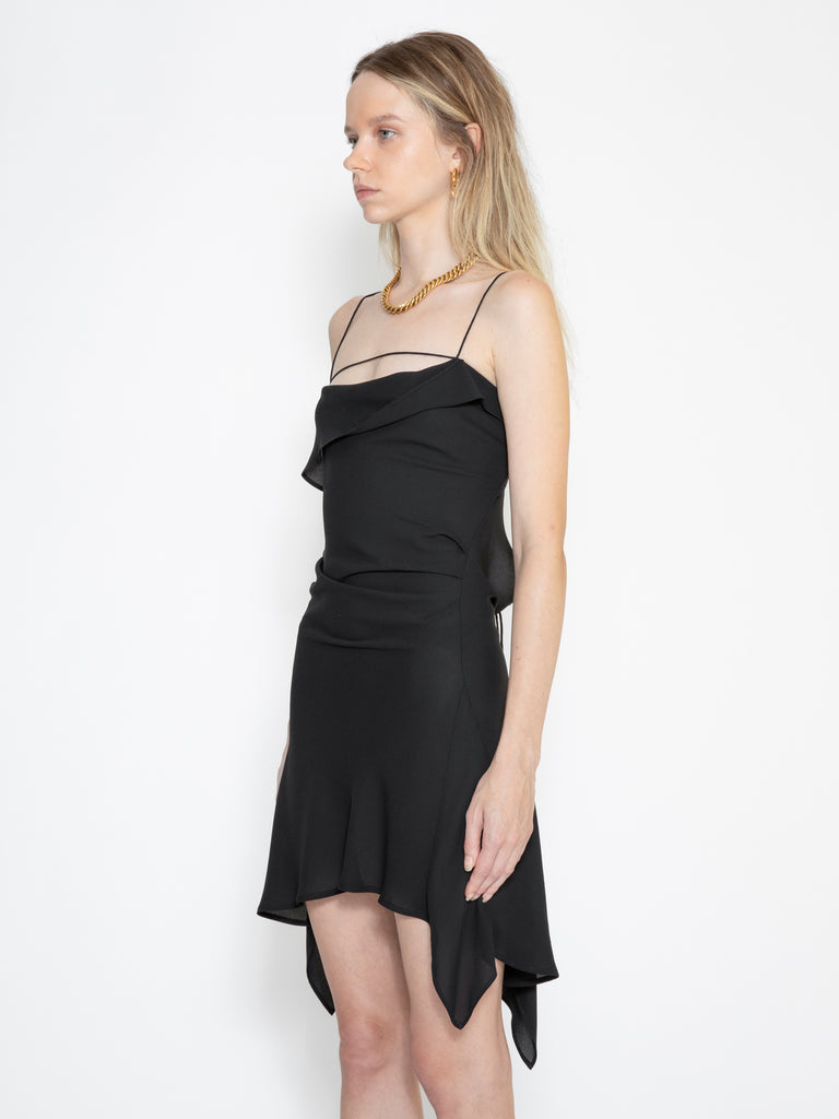 The Erica dress brings a touch of sensual contemporary to your wardrobe with a soft silhouette that flatters the feminine figure. Characterized by an irregular and asymmetrical bottom and open back: elements able to make it a very glam/rock piece.