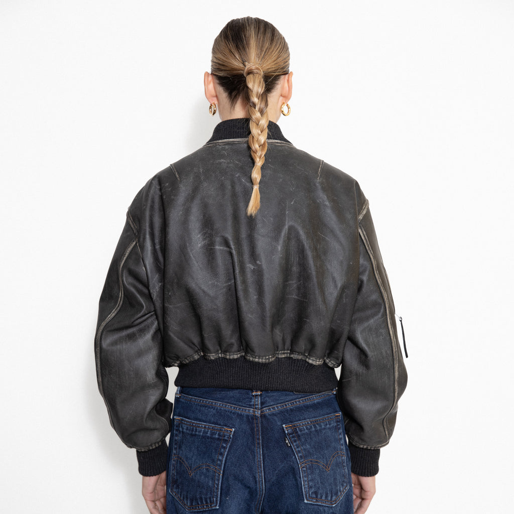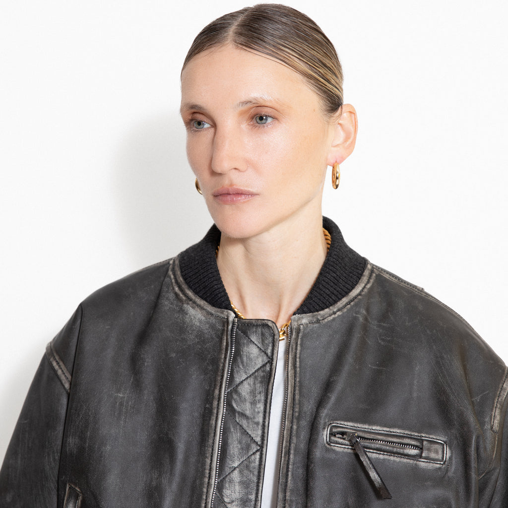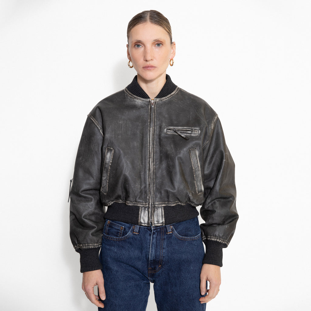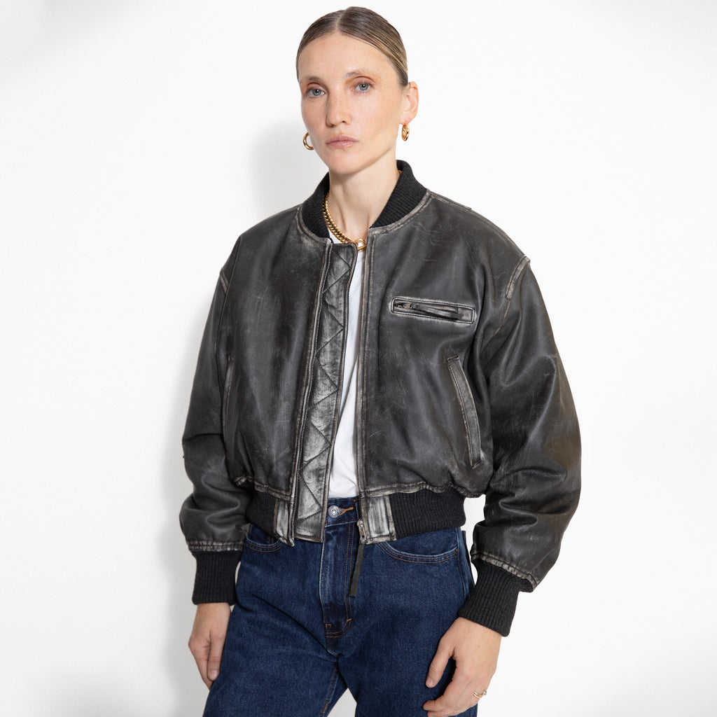 Il Bomber Dean in pelle è la nostra dichiarazione d'amore verso il mondo grunge. Uno speciale trattamento gli conferisce un straordinario aspetto vissuto. I bordi in costine su colletto, polsini e fondo aggiungono un raffinato contrasto, rendendolo perfetto da abbinare con i tuoi jeans preferiti.