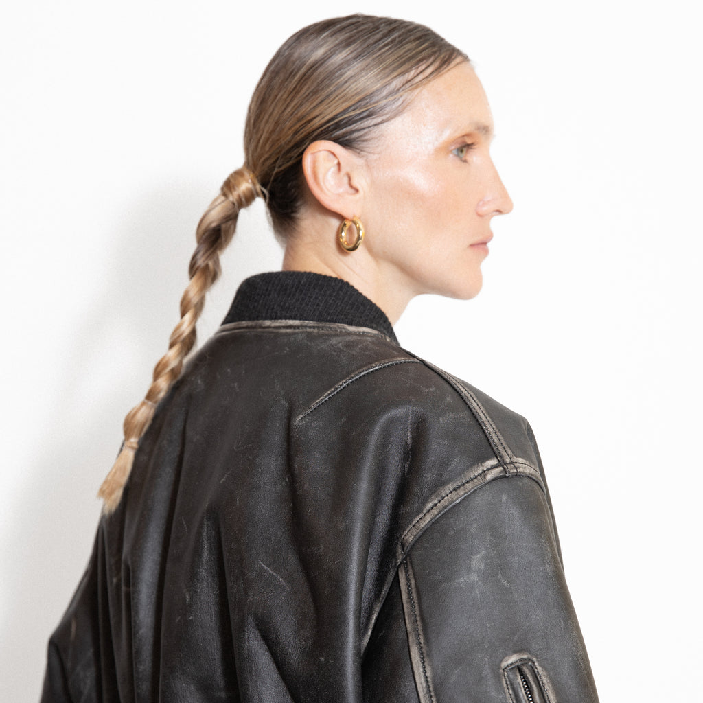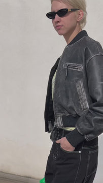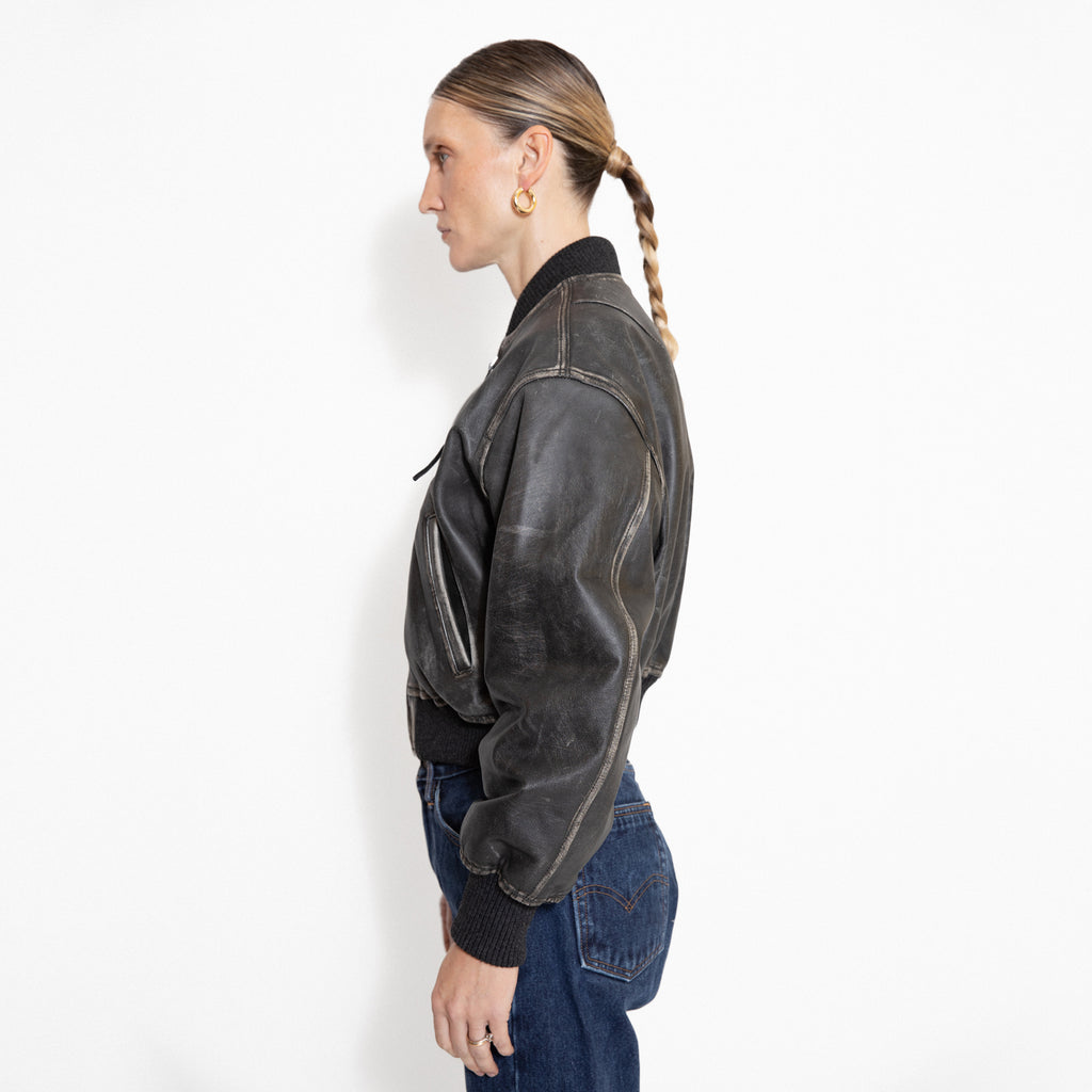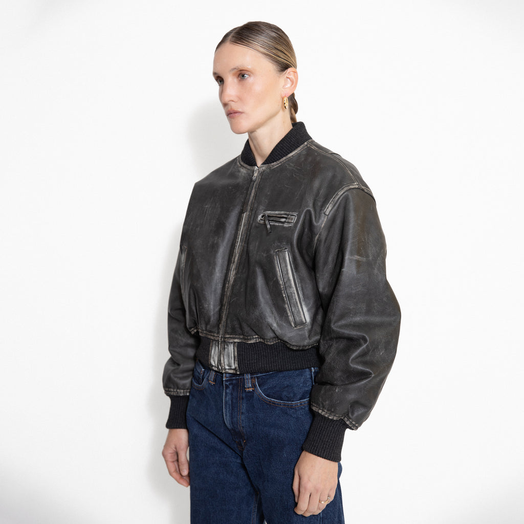 Il Bomber Dean in pelle è la nostra dichiarazione d'amore verso il mondo grunge. Uno speciale trattamento gli conferisce un straordinario aspetto vissuto. I bordi in costine su colletto, polsini e fondo aggiungono un raffinato contrasto, rendendolo perfetto da abbinare con i tuoi jeans preferiti.