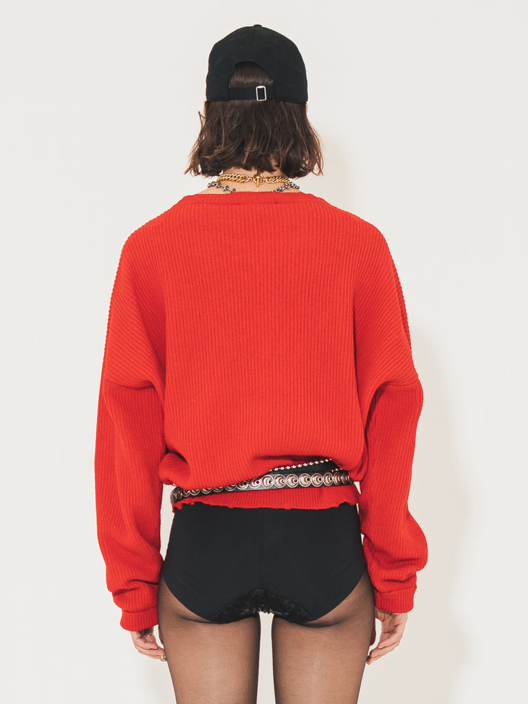 Il maglione rosso Lilith in misto lana cashmere è un capo casual, perfetto per chi ama uno stile grunge e informale. Gli strappi, strategicamente posizionati, gli danno quel tocco di irriverente personalità. La combinazione di cashmere e misto lana dona al capo una sensazione di morbidezza e comfort, perfetta per un look grunge senza mai rinunciare alla comodità.