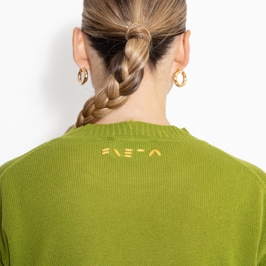 Billie cashmere sweater has a soft silhouette that draws inspiration from 1990s. It is crafted from precious cashmere and defined by a white SVETA embroidery. Fine, lightweight knitwear fits like the second skin.